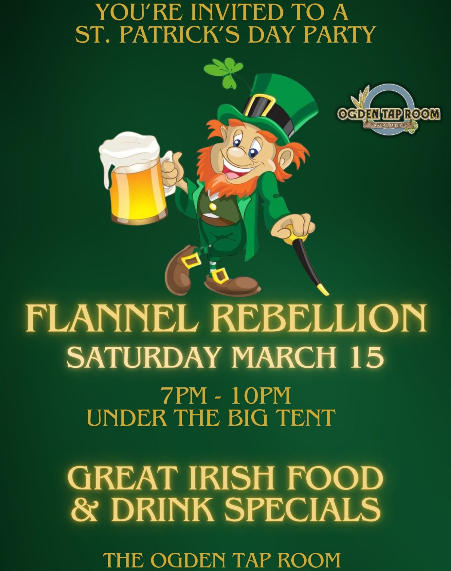 An evening of shamrocks and shenanigans! Celebrate St. Patrick’s Day at Ogden Tap Room with delicious Irish food, drink specials, and live music. Join us for a fun night of Irish cheer and entertainment under the big tent!